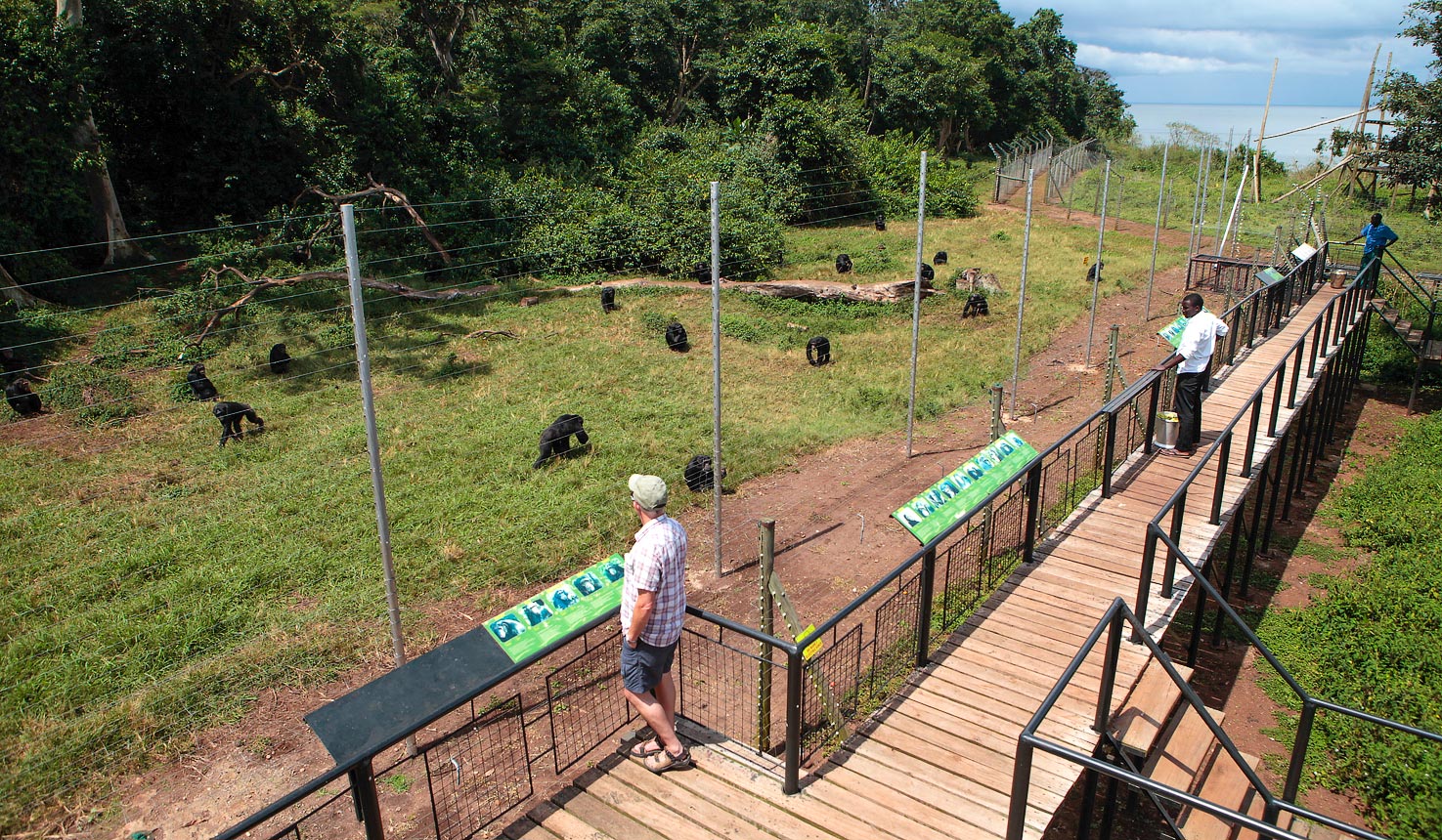 Management of the island is under by the chimpanzee trust and therefore they are responsible for a two time supplementary daily feeding of these great apes. This is in the morning hours (9am-12:45pm) and in the afternoon hours (12:45pm -5 pm). It is therefore, based on this that half day chimpanzee viewing activities are organised for the public to watch the chimpanzees as they feed. Watch them fight for fruits and vegetables and so much more. The activity starts with pick up from the main land Entebbe which is 24kms away or forty five minutes speed boat ride away. Then on arrival at the island you’re briefed about the work done, before heading to the raised platform to look at the chimpanzees, feeding. Bookings can be organised through a tour operator and this would be an excellent activity to do at the beginning of your Uganda gorilla trekking safari.