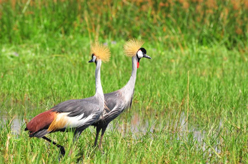 Ajai reserve is a big birding destination but it is still a home to a small number of bird species. For example the African fish eagles, the grey crowned cranes, bigger birds like marabou storks and many more others.